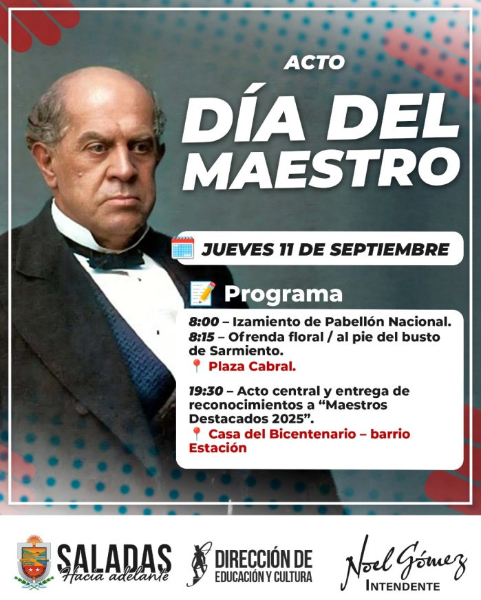 El intendente municipal Noel Gómez a través de la Dirección de Educación y Cultura municipal, invita a la comunidad a acompañar las actividades en el marco del 137° aniversario del Paso a la Inmortalidad de Domingo Faustino Sarmiento, este jueves 11 de septiembre.