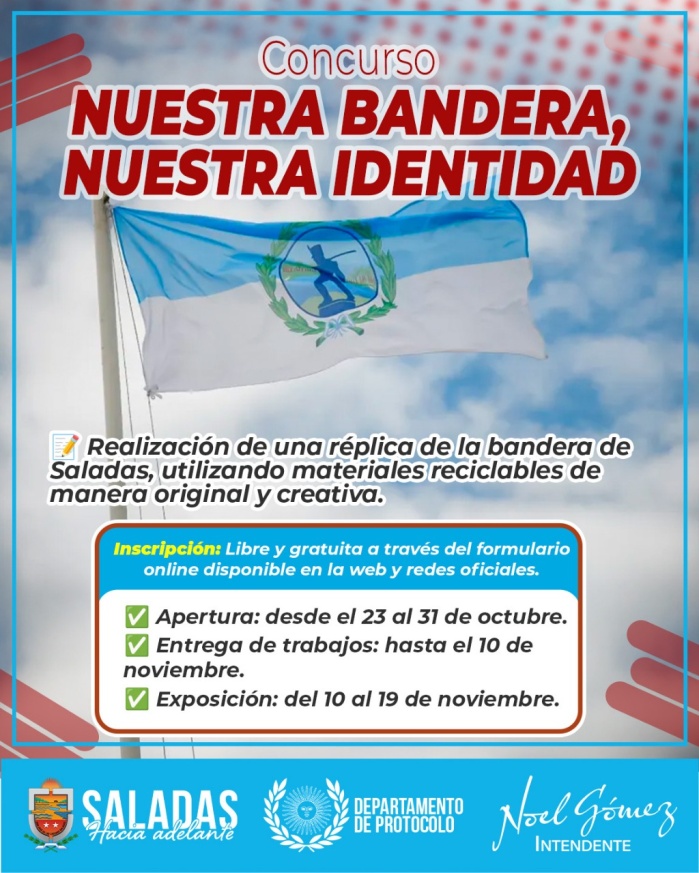 Por segundo año consecutivo y con motivos del 293° aniversario fundacional de la ciudad – “Mes de Saladas”, todos los jóvenes interesados podrán sumarse a este proyecto, cuyo objetivo es elaborar una réplica de la Bandera de Saladas con materiales reciclables.