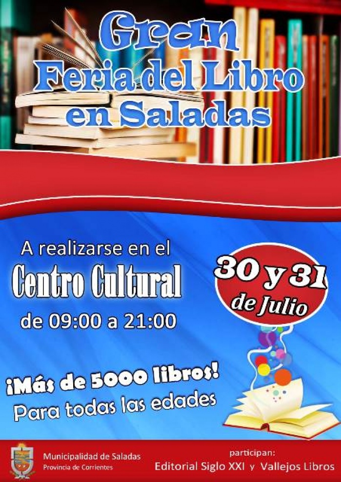 El evento de destacada relevancia, dado que es la primera vez que se realiza en Saladas a través de un programa netamente local, como asimismo el volumen de ejemplares y títulos que se ofrecerán. De esta feria participaran las editoriales "Siglo XXI" y "Vallejos Libros".